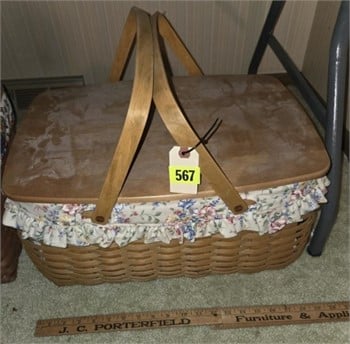 Catalogued lots include the following: Numerous Longaberger Baskets, Candles, Pottery & Iron Displays- New Geneva Pottery Snowmen- Antique School Desk- Wood Ironing Boards, Antique Marcy 5 Drawer File Cabinet- Marcy Index Card File Boxes- Vtg. Sears Floor Model Silvertone AM FM Phono Stereo-Antique 1 Drawer Arts & Crafts Library Table – Partylite Items- Vera Bradley Purses & other items-Numerous Lenox Figurines, Ornaments (several new in the boxes) – Hallmark Keepsake Ornaments and Many other Catalogued lots.
