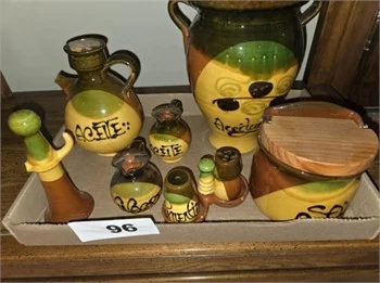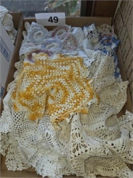 Numerous Quilts- Sewing Material- Quilt Squares- Ethan Allen Furniture- 4′ Tall Wood Carved Horse – 31 Day Key Wind Wall Clock- Key Wind Gingerbread trim Mantle Clock- Various Glassware items – Sewing Notions – Jars of Buttons- Pyrex Nesting Bowls – Sheets of Uncut 16 $1 & $2 Dollar Bills-Scarves- Table Linen- Crocheted Doilies- Nic Nacs- Costume Jewelry – Towle Sterling Silver Flatware Pcs. – Dining Room Table & 6 Chairs- 2 pc. lighted hutch- Sideboard- Bakers Rack- Numerous pcs.of Lenox- Several Pcs. of Stoneware- Harvest Jugs- Hadlich Wheeling W.Va Harvest Jug – Rodefers Down on the Farm Shadyside Ohio Ketchup Jug & other Stoneware pcs. – Home Decor items – Grandfather Clock – Vtg. Floor Model Stereo System – Rattan & Glass Round Table & 2 Chairs- Vtg. Raggedy Ann & Andy Metal Lunch Box w/ Thermos – Salt & Pepper Shakers – Mexican Items – Brentwood Dogwood China- Several Gold Colored Rings – Vtg. Pittsburgh Pirates Three Rivers Stadium Felt Pennants – Watches – Vtg. Oval Raised Frame Portraits – Books- Record Albums – Craftsman/ Sears 13.5 HP, 42″ deck Riding Lawn Tractor, for parts or repair – Honda Push Mower – School Teachers Hand Bells – and many other Catalogued Lots