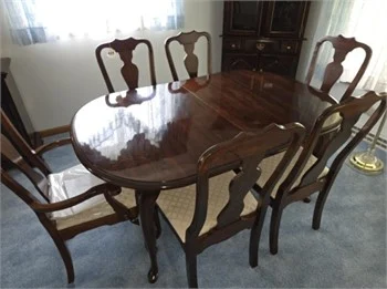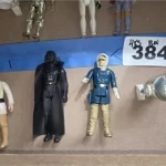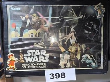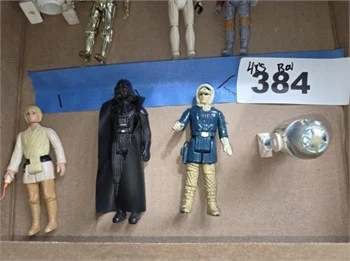 KINCAID DINING ROOM FURNITURE-BEDROOM FURNITURE, POWER RECLINER –  VTG. STAR WARS PLAYSETS, FIGURES, CASES, PARTS – TEMPTATION DINNERWARE PCS. Vtg. Star Wars Action Figures- Accessories- PlaySets- Longaberger Baskets & Pottery – Sterling Spoons – Coins – Vtg,. Magazines- Sports Cards – Glassware items- Small Collectible Items- Vtg. Cosco Kitchen Cart & Pull-out step stool – Vtg. Bottles – Metal Storage Racks – Coca Cola Trays from 70’s – Several Stoneware items -Slag Shade Metal Base Table Lamp- Avon Decanters (in boxes)  & many other catalogued lots